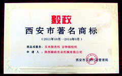 為了貫徹落實(shí)《西安市人民政府關(guān)于推進(jìn)商標(biāo)戰(zhàn)略的實(shí)施意見(jiàn)》,根據(jù)《西安市著名商標(biāo)認(rèn)定與保護(hù)規(guī)定》,經(jīng)2011年10月9日西安市著名商標(biāo)認(rèn)定委員會(huì)全體會(huì)議審查通過(guò)、西安市工商行政管理局批準(zhǔn),認(rèn)定陜西毅政農(nóng)業(yè)機(jī)械有限公司“毅政”商標(biāo)為西安市著名商標(biāo)。